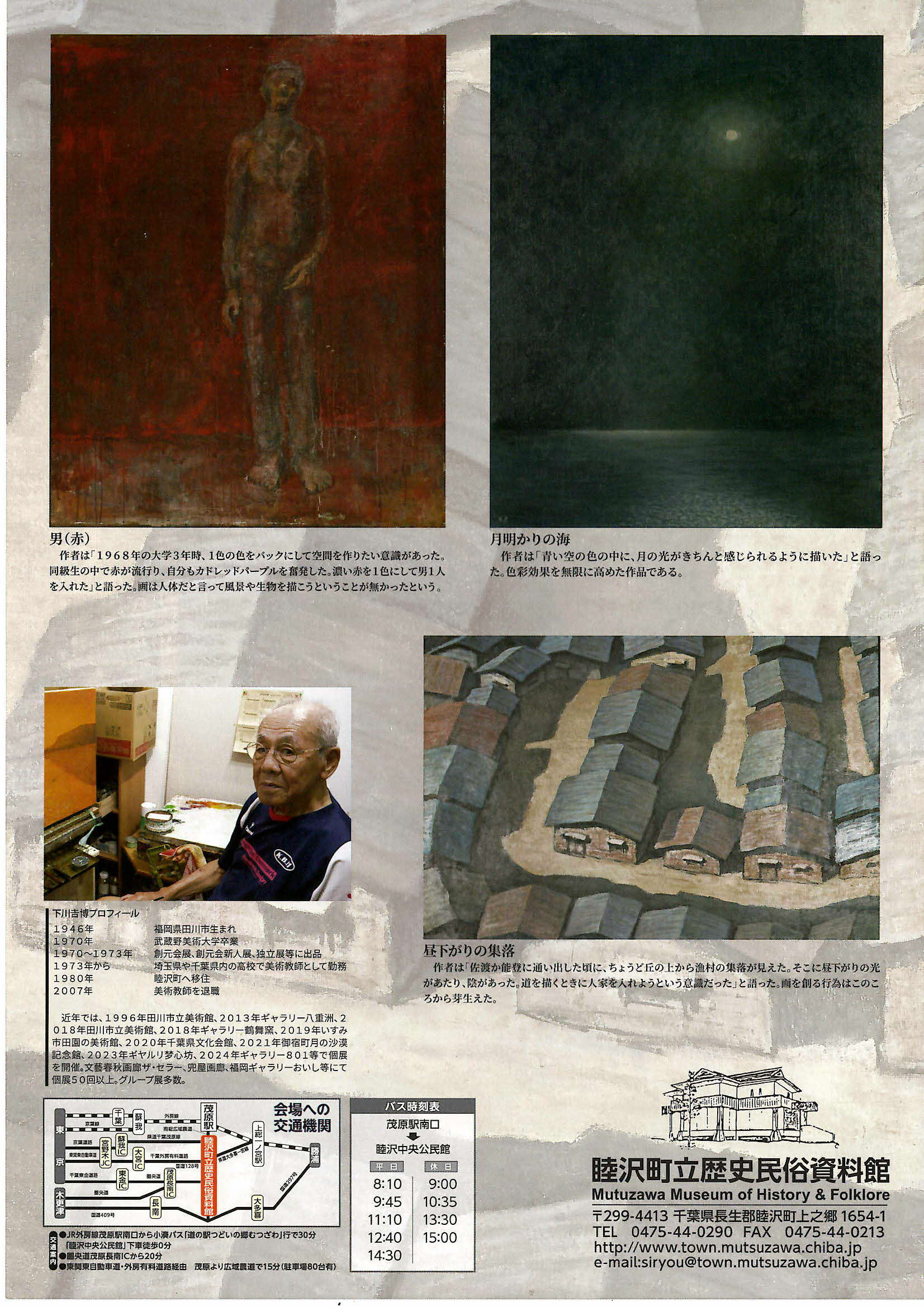 睦沢町在住の洋画家である下川吉博氏の、画とともに歩んできた人生を振り返り、絵画創造への心のありようを紹介します。