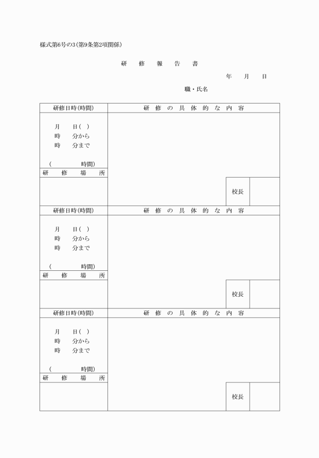 3 出張を命ぜられた職員は、当該出張から帰校した場合には、帰校した日から5日以内に復命書(様式第5号)を校長に提出しなければならない。ただし、用務が軽易な事項であると校長が認めたときは、口頭で復命することができる。